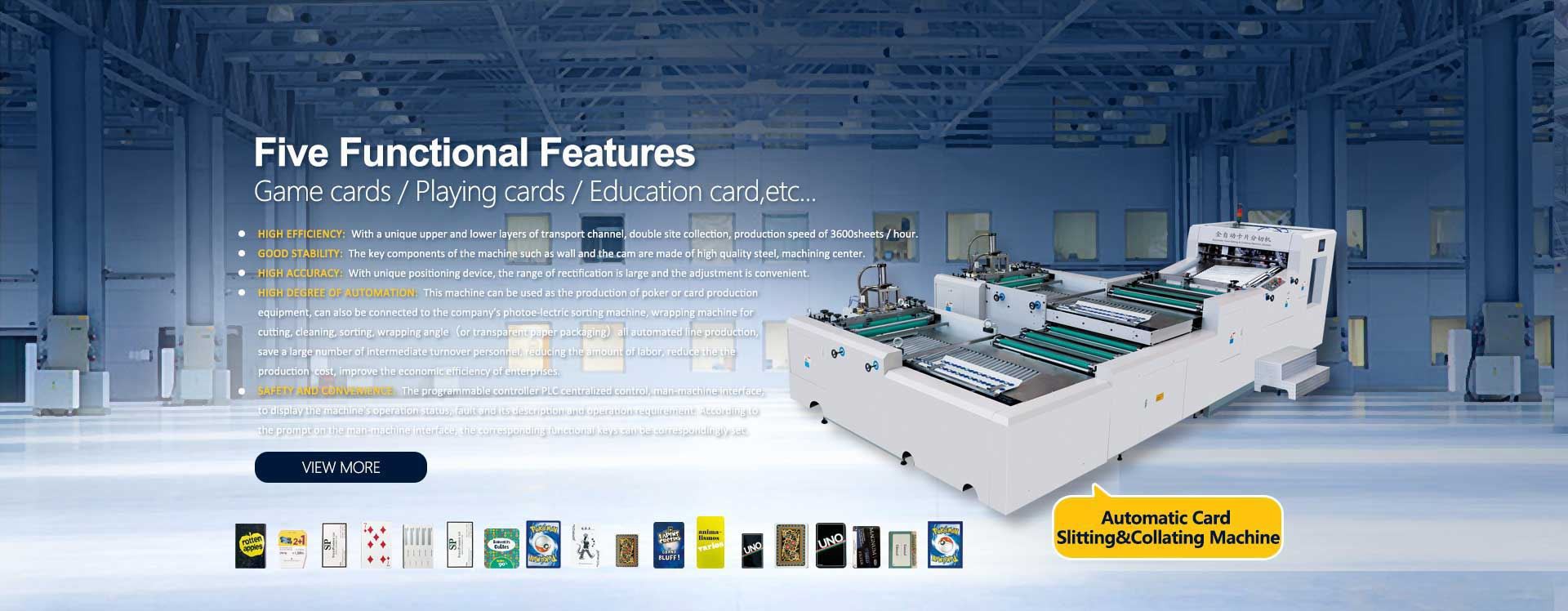 | מוצרים עיקריים: | מכונת חיתוך ואיסוף קלפים, מכונת מיון קלפים, מכונת עטיפת קופסאות קלפים, מכונת עטיפה של סרטי קלפים; מסובב כלונסאות; מכונת הבלקה; מכונת טעינת נייר; מכונת פריקת נייר; למינציה לחליל במהירות גבוהה; מלגזה וכן הלאה. |